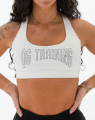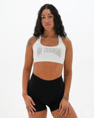 White Race-Day Sports Bra Model: Wearing Size X-Small